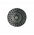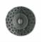 Kovinski gumb z reliefnim geometrijskim vzorcem.