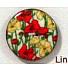 Plastični obojestranski gumb z motivom rožic, premer gumba je 22 mm.