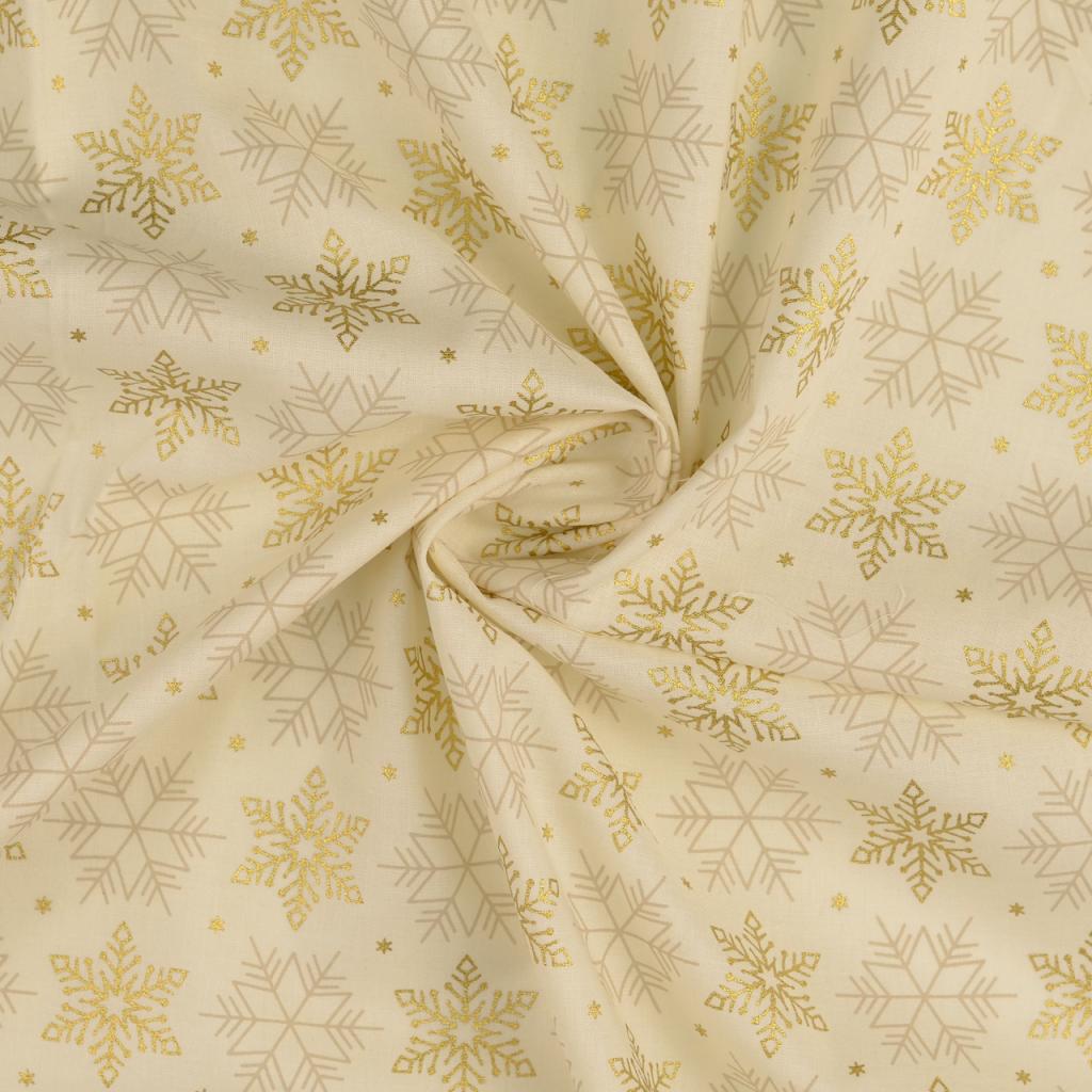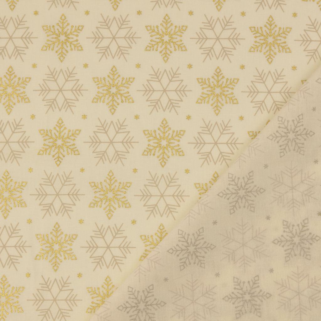 Poplin Božične snežinke | metalik | krem | 100%CO