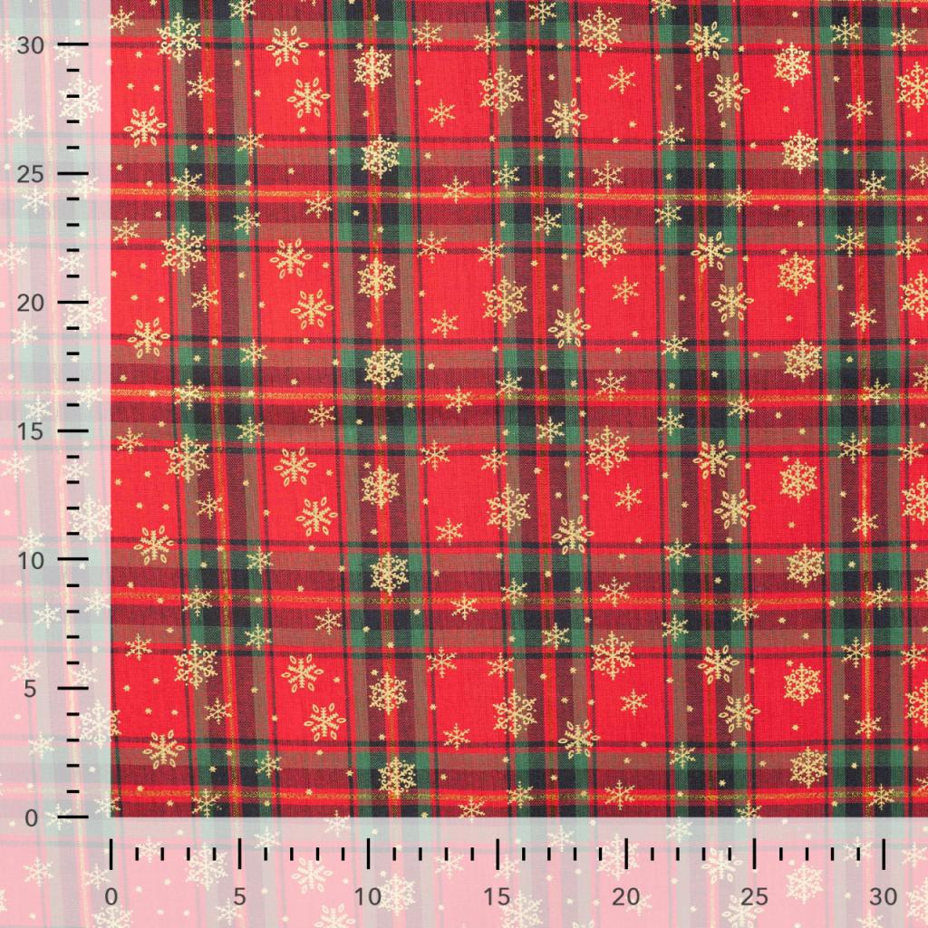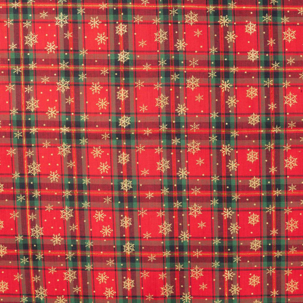 Poplin Božični karo | Zlate snežinke | rdeča | 100%CO