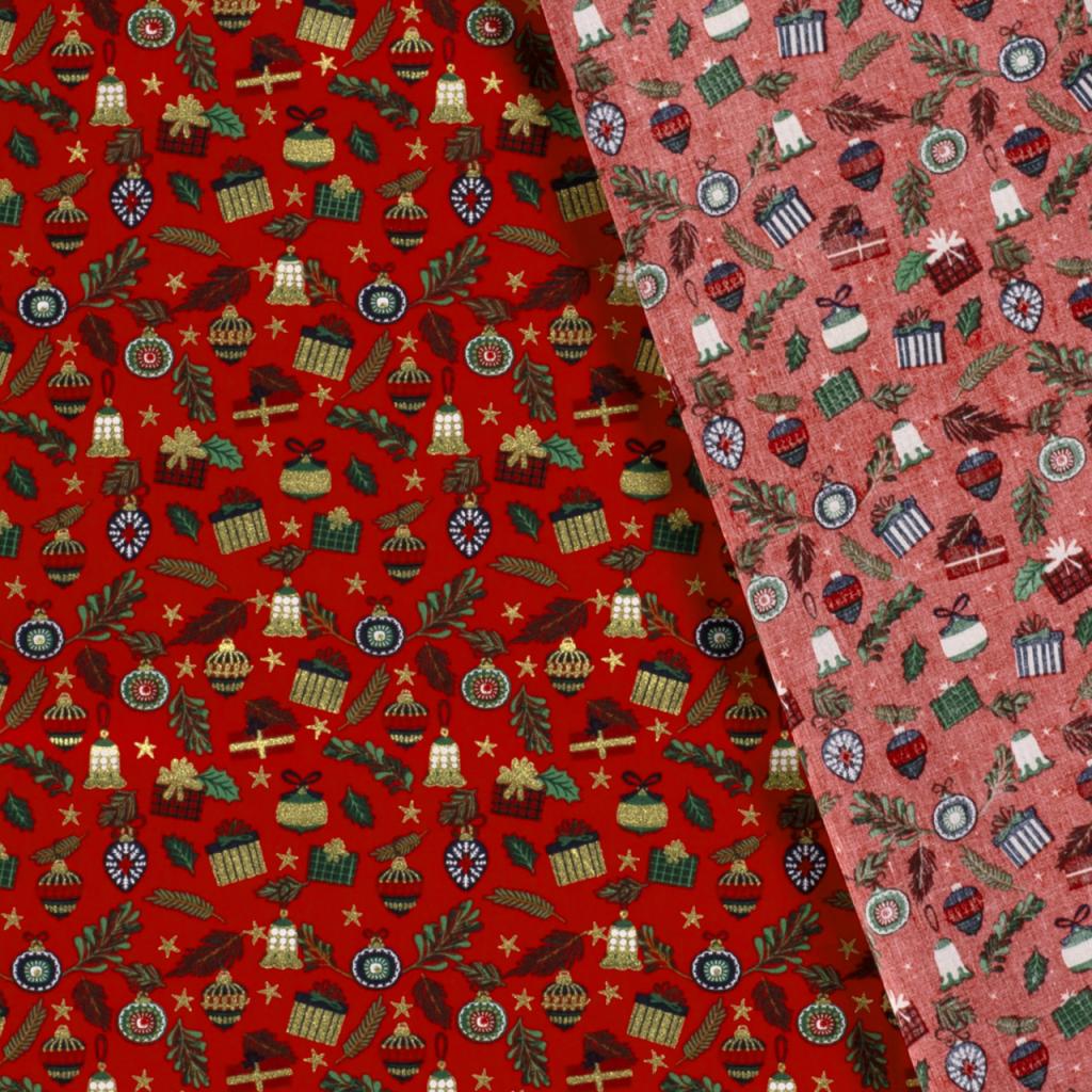Poplin Božični okraski in darilca | metalik | rdeča | 100%CO