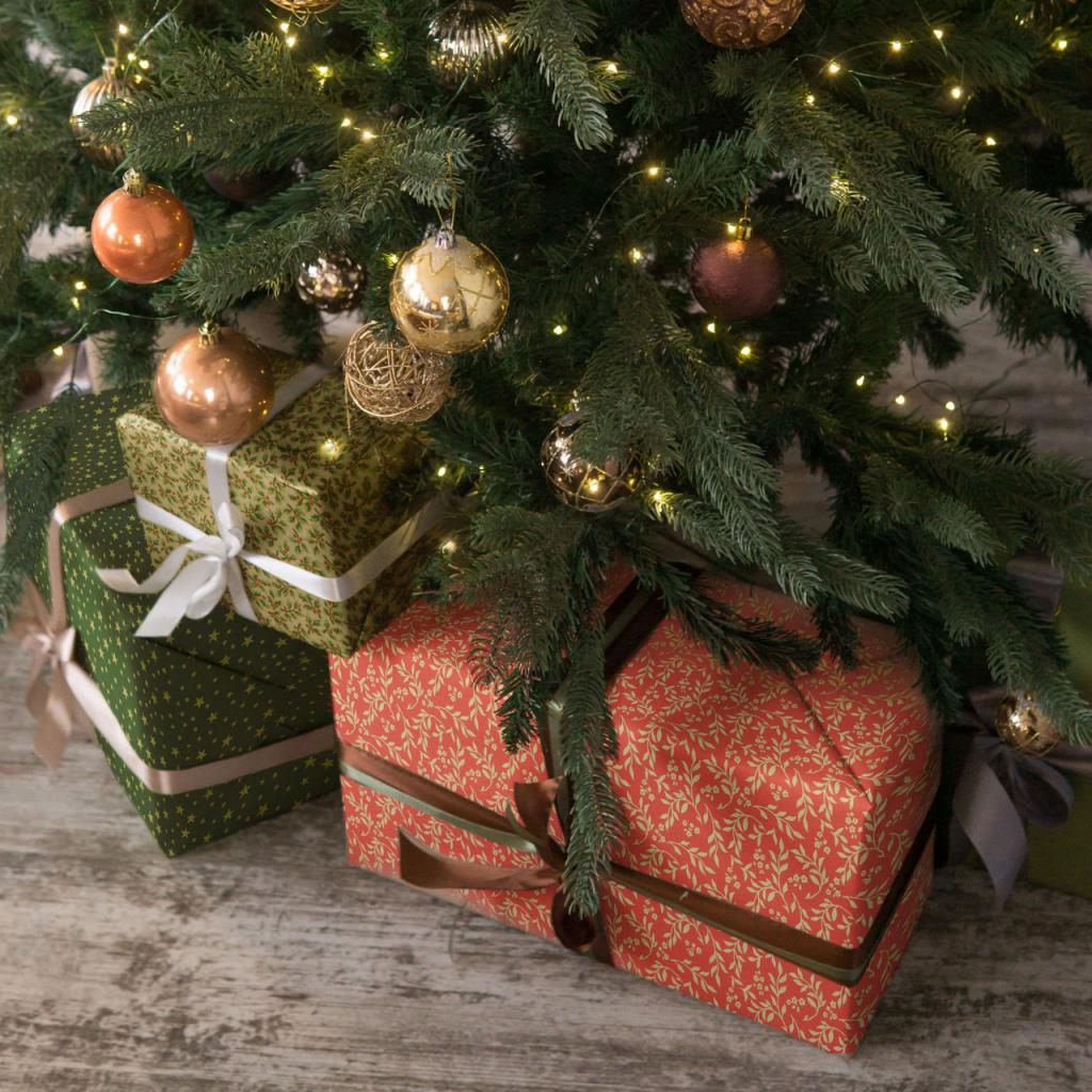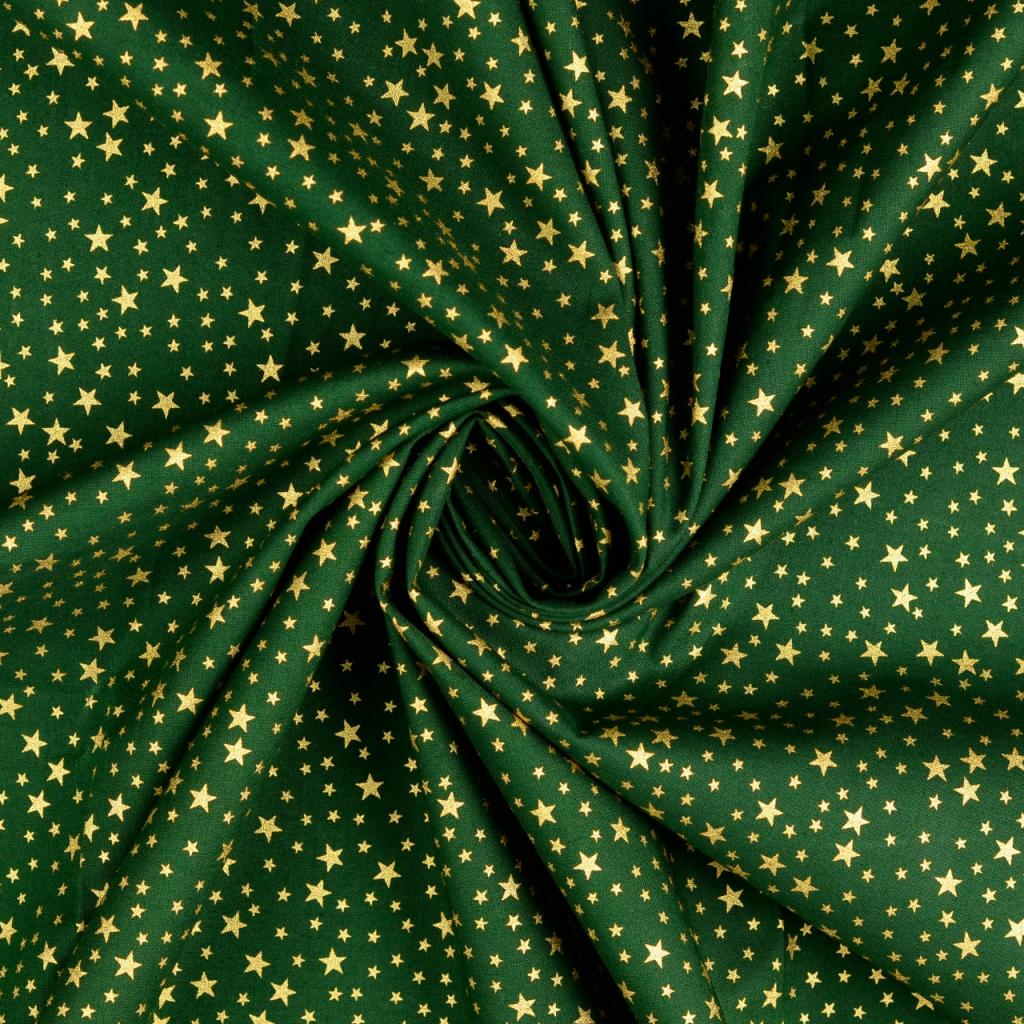Poplin Božično nebo | metalik | zelena/zlata | 100%CO