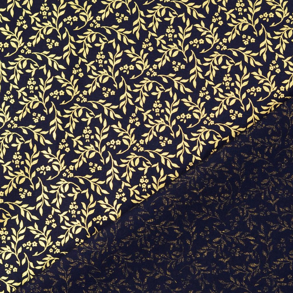 Poplin Božično omelo | metalik | temno modra | 100%CO