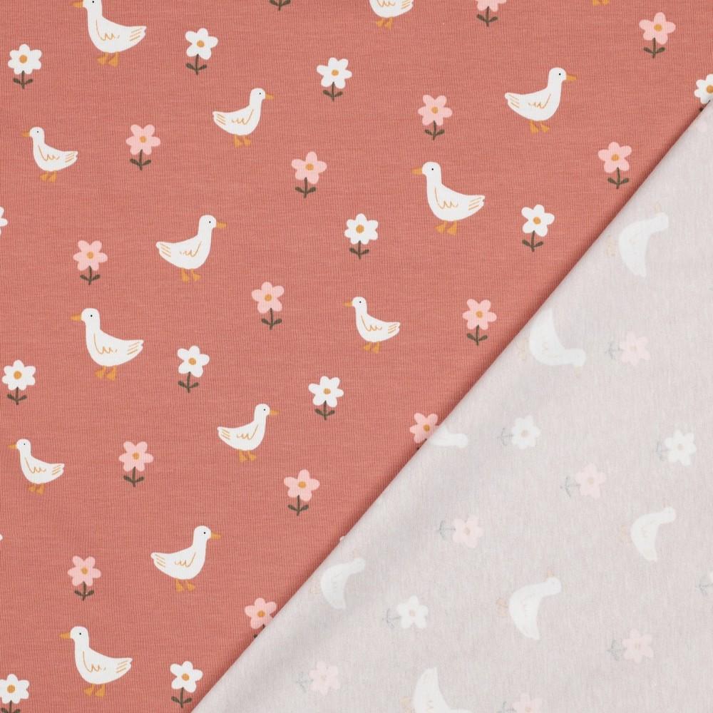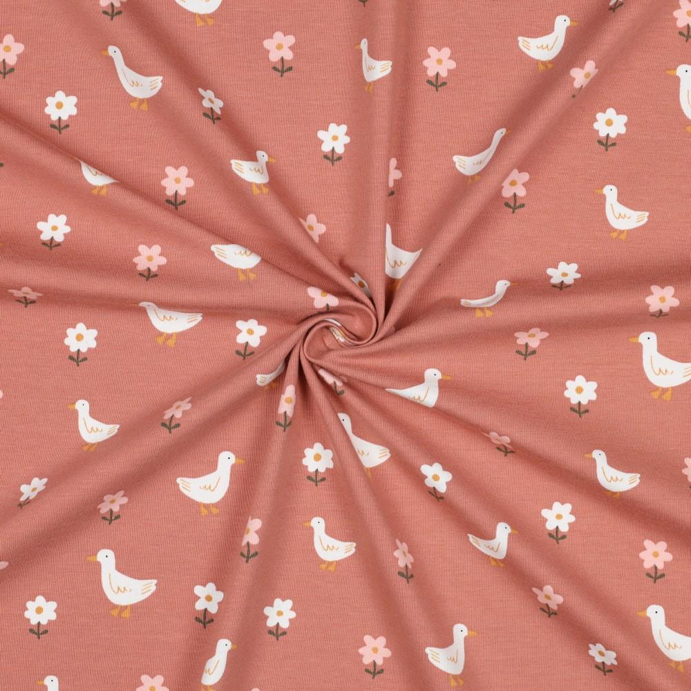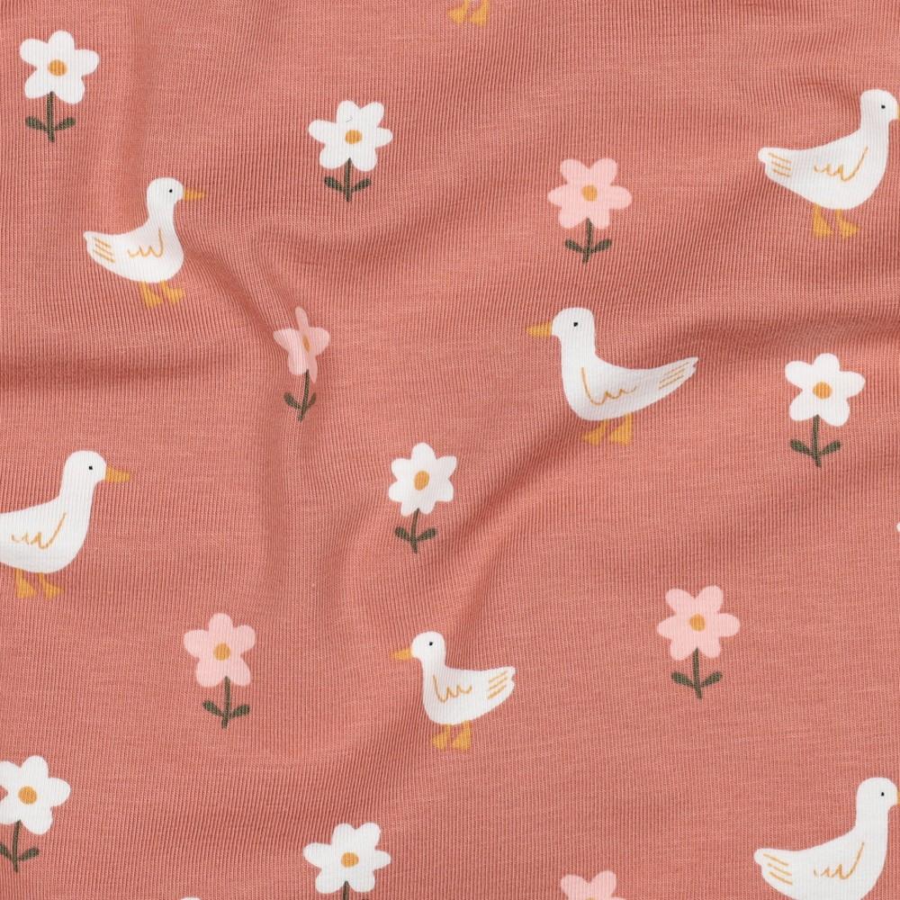 GOTS jersey Goske in rožice | losos | 95%CO / 5%EL