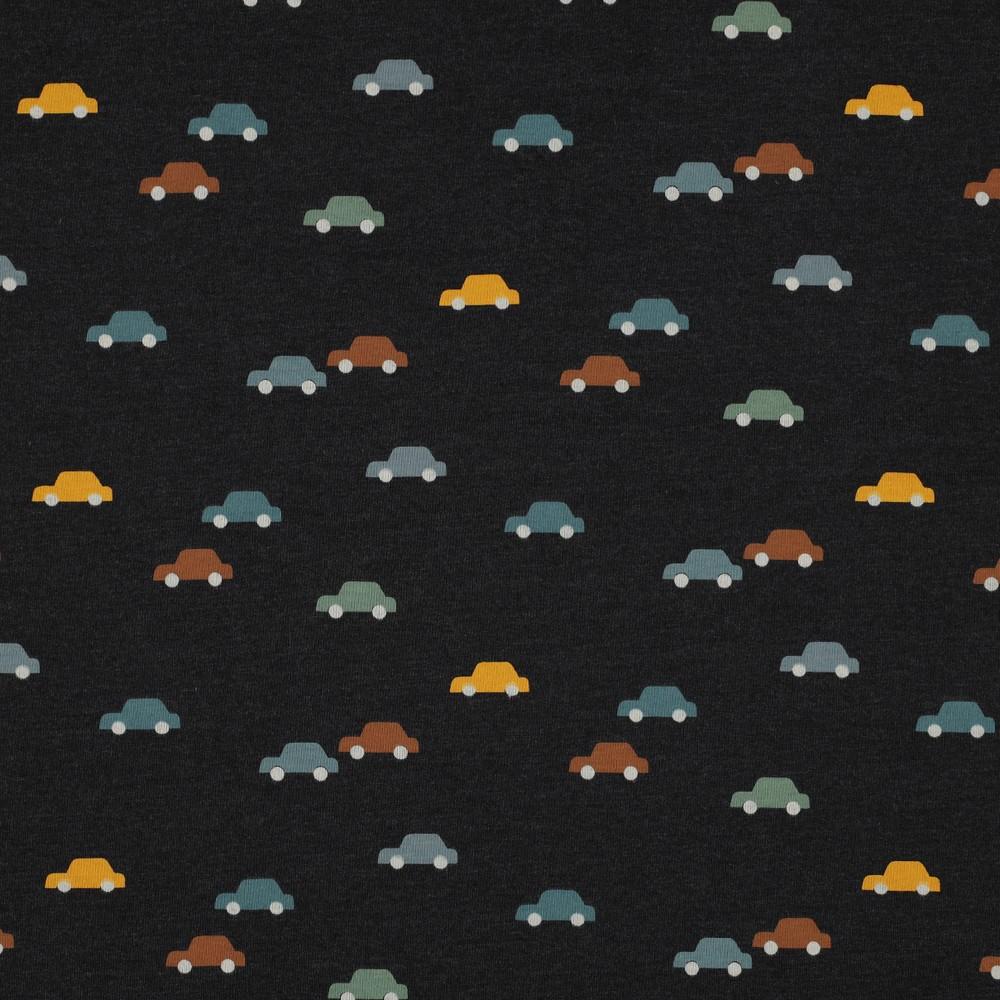 - >Metrsko blago>Jersey>Bombažni jersey>Potiski>Jersey Mini avti | antracit melanž | 60%CO / 35%PL / 5%EL