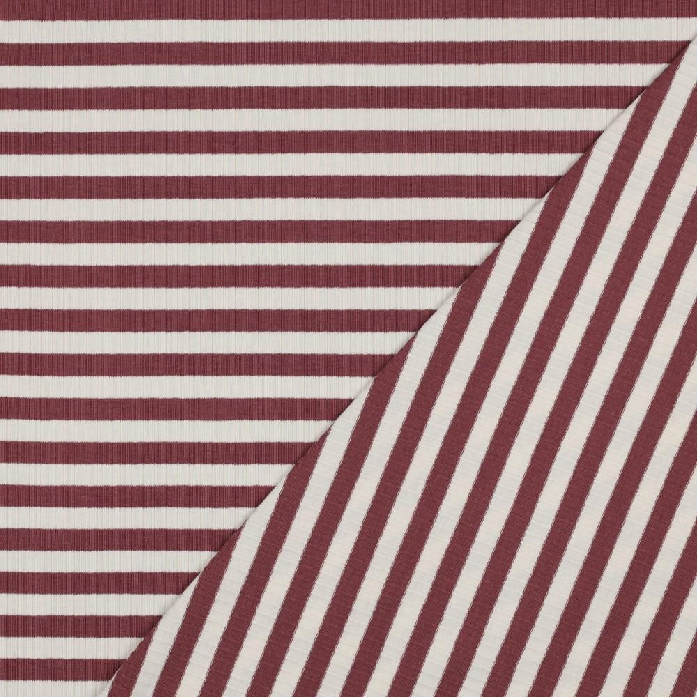 - >Metrsko blago>Jersey>Bombažni jersey>Potiski>Rebrasti jersey Yarn dyed | Črte | temnoroza | 95%CO / 5%EL