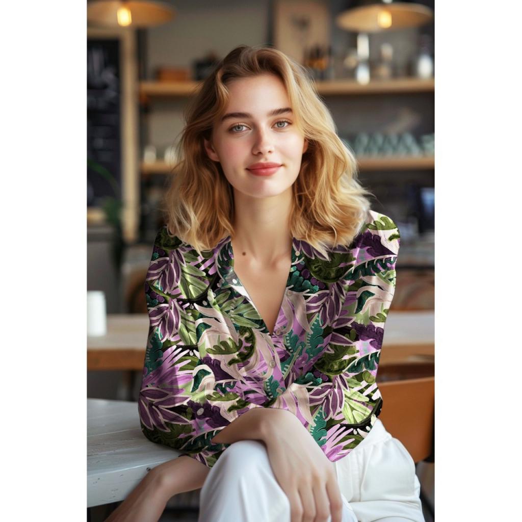Bombaž z viskozo Tropska noč | vijolična/zelena | 60%CO / 40%VI