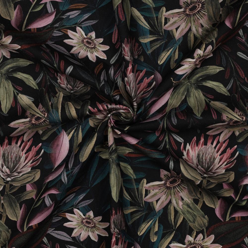 - >Metrsko blago>Blago za dom in dekorativo>Lažje dekorativno blago>Vzorci>Deko bombaž Cvetoča džungla | črna | digitalni tisk | 100%CO