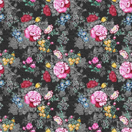 Deko bombaž Art deco cvetovi | antracit | digitalni tisk | 100%CO