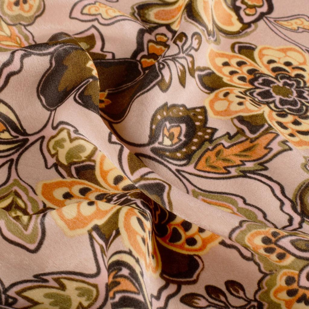 Saten Velvet je gladka, tanka tkanina z značilnim nežnim sijajem in svilnatim otipom. Odlična je za šivanje lahkih bluz, tunik, oblek in kril.