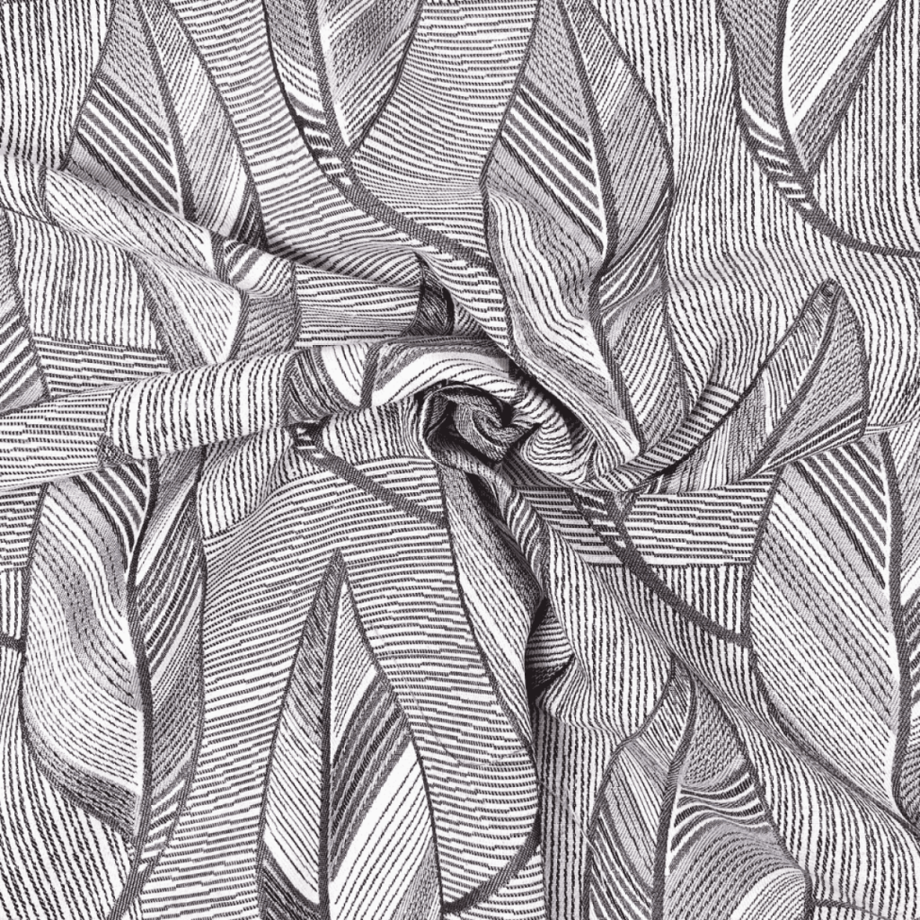 Žakard Listi | antracit | 60%PL / 30%CO / 10%LI