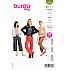 Tri verzije jednostavnih hlača opuštenog kroja s elastičnim pojasom. Možete birati između jednostavnih dugih hlača (model A), 7/8 hlača u stilu culotte (model B) ili varijante C, koja ima nogavice stisnute vrpcom na dužini.