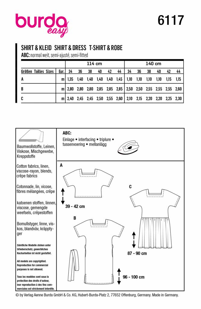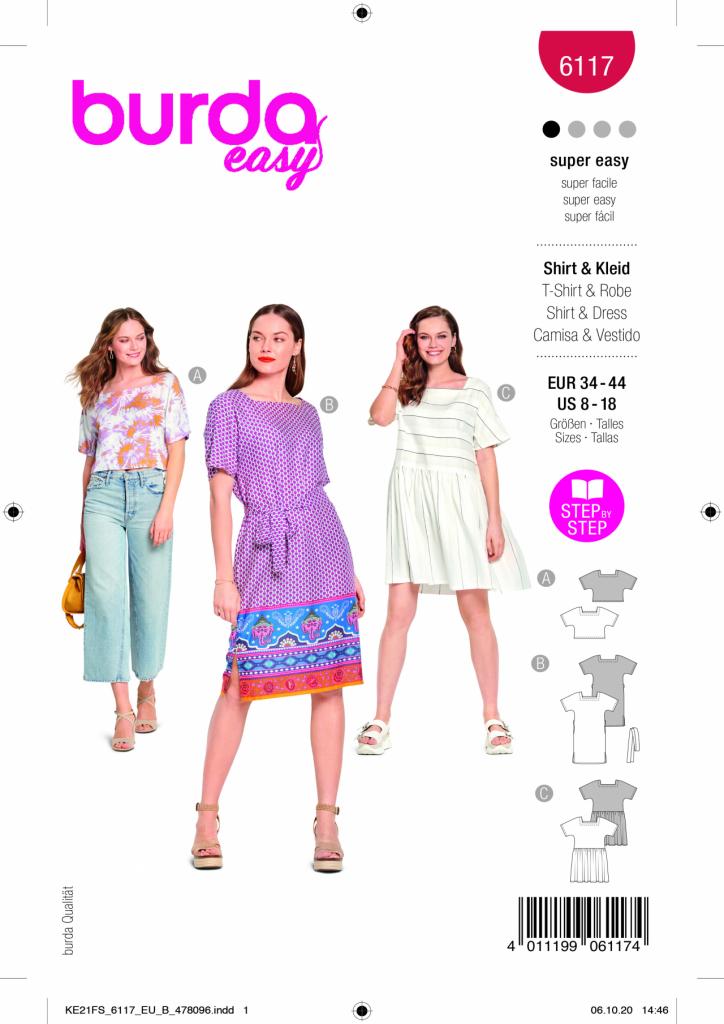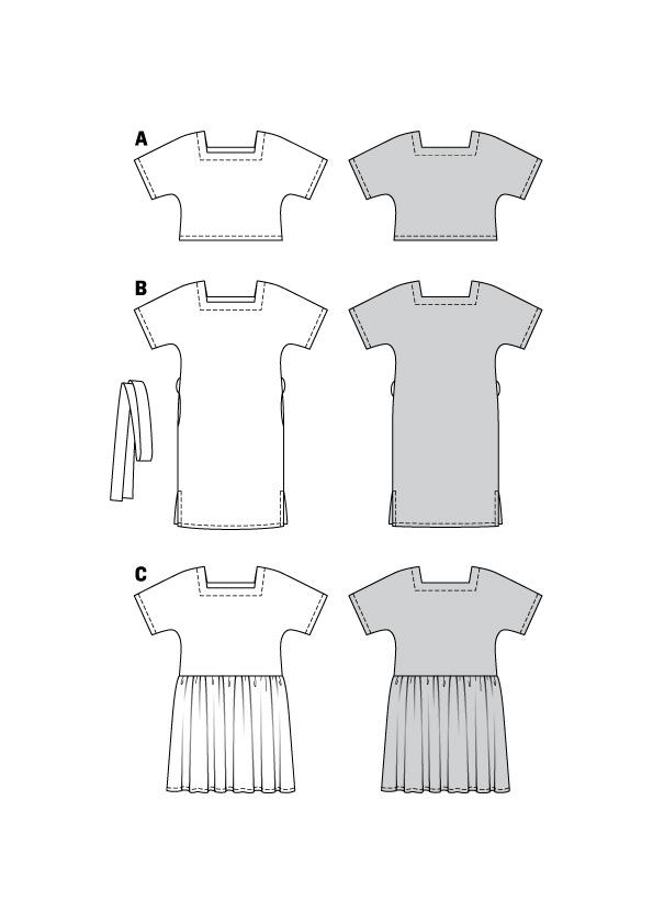 Kroj za bluzu i dvije haljine s pravokutnim vratnim izrezom. Sva tri modela imaju ležeran pad i jednostavni su za šivanje.