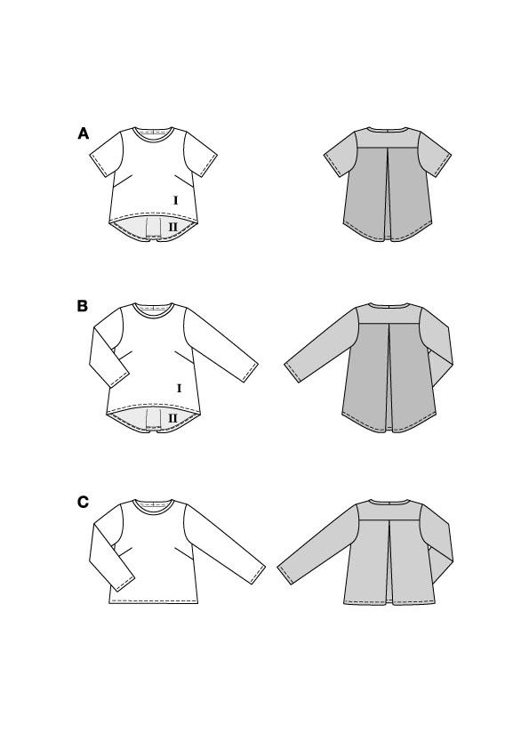 Kroj za početnike za bluzu s modernim detaljem dubokog nabora na leđima, s kratkim ili dugim rukavima.