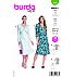Kroj za elegantnu haljinu dužine tik ispod koljena. Detalji uključuju blago nabrane rukave te dekora ...