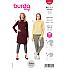 Haljina i pulover čistih linija s povišenim vratnim izrezom i rukavima s prorezom koji se šire prema duljini.