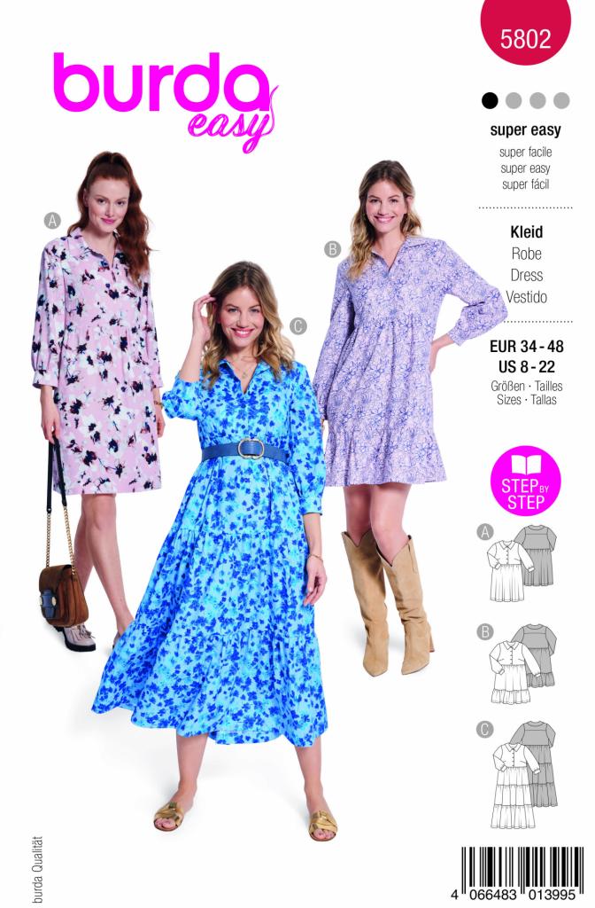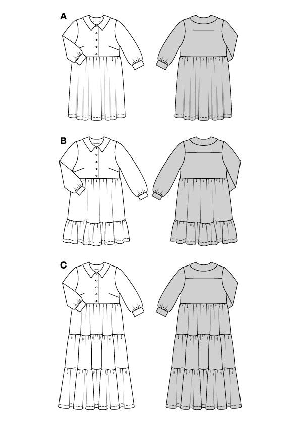Tri različite duljine haljine-košulje s dugim rukavima, ovratnikom i volanima. Najlakša razina težin ...