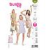 Kroj za modernu haljinu s blago spuštenim rukavima, elastičnim strukom i atraktivnim dekolteom na leđima. Elastična vrpca omogućuje podešavanje veličine otvora na leđima i jednostavno oblačenje. Haljina C ima široki volan po duljini.