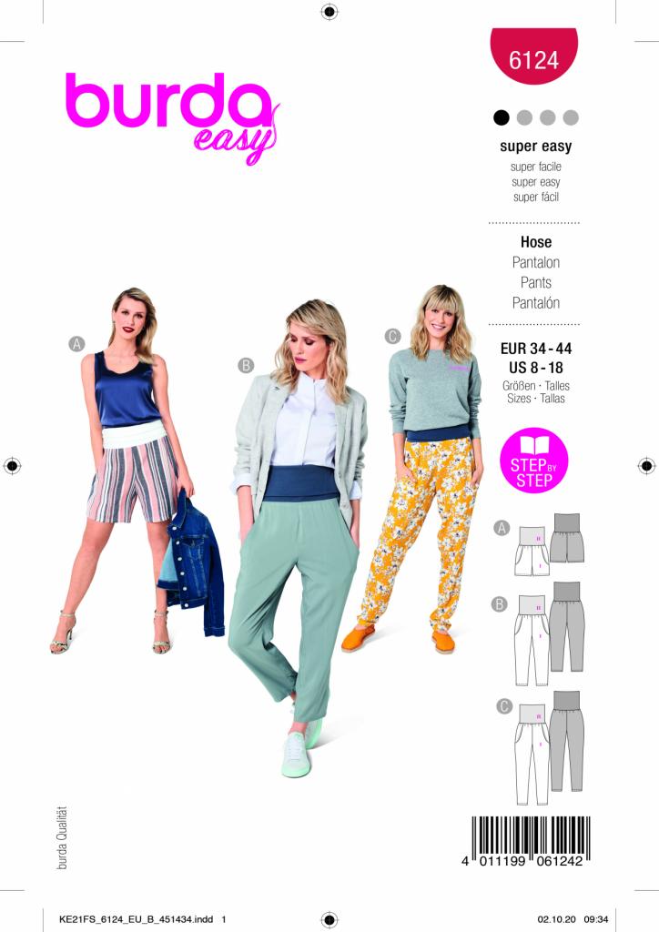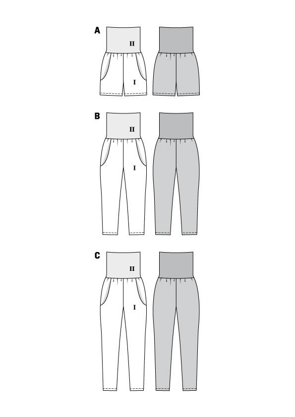 Kroj za ženske hlače s visokim rastezljivim pasicom, prikladne i za ured i za slobodno vrijeme. Možete birati između tri različite duljine.
