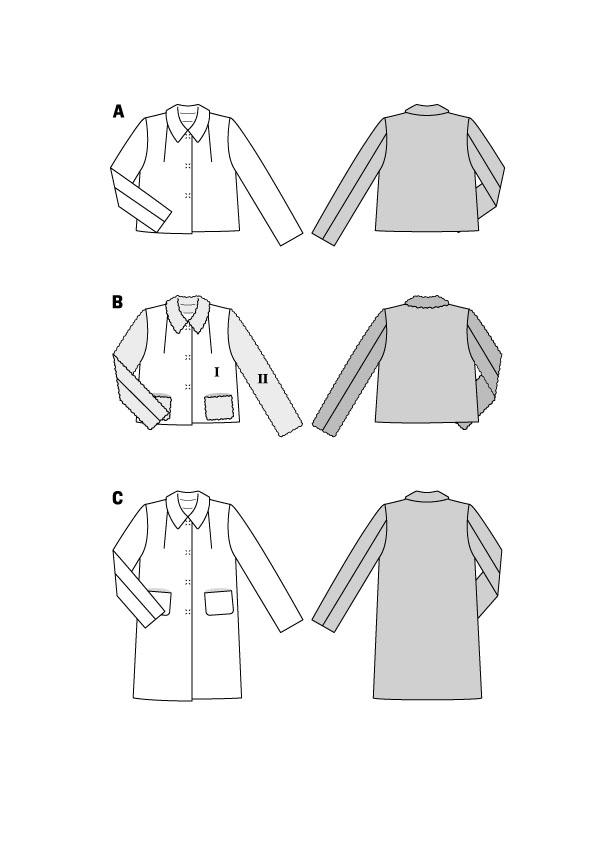 Komplet tri jednostavna kroja za kaput i dvije udobne jakne s ovratnikom. Pogodno i za početnike. ...