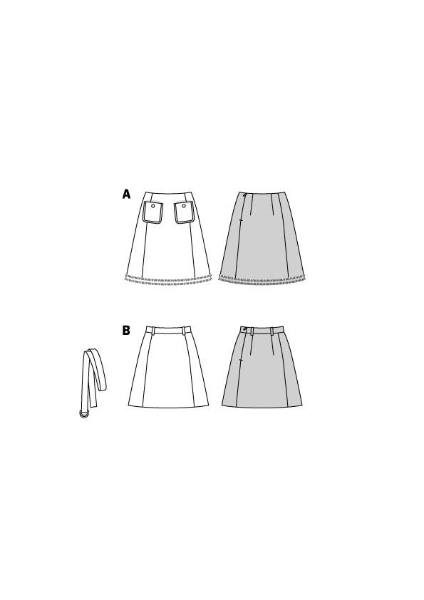 Prekrasna plisirana suknja, klasičnog A-kroja. Suknja A doseže do koljena i ima našivene džepove, dok je suknja B nešto kraća, bez džepova i ima remen sa šnalama za remen. Oba modela su podstavljena.