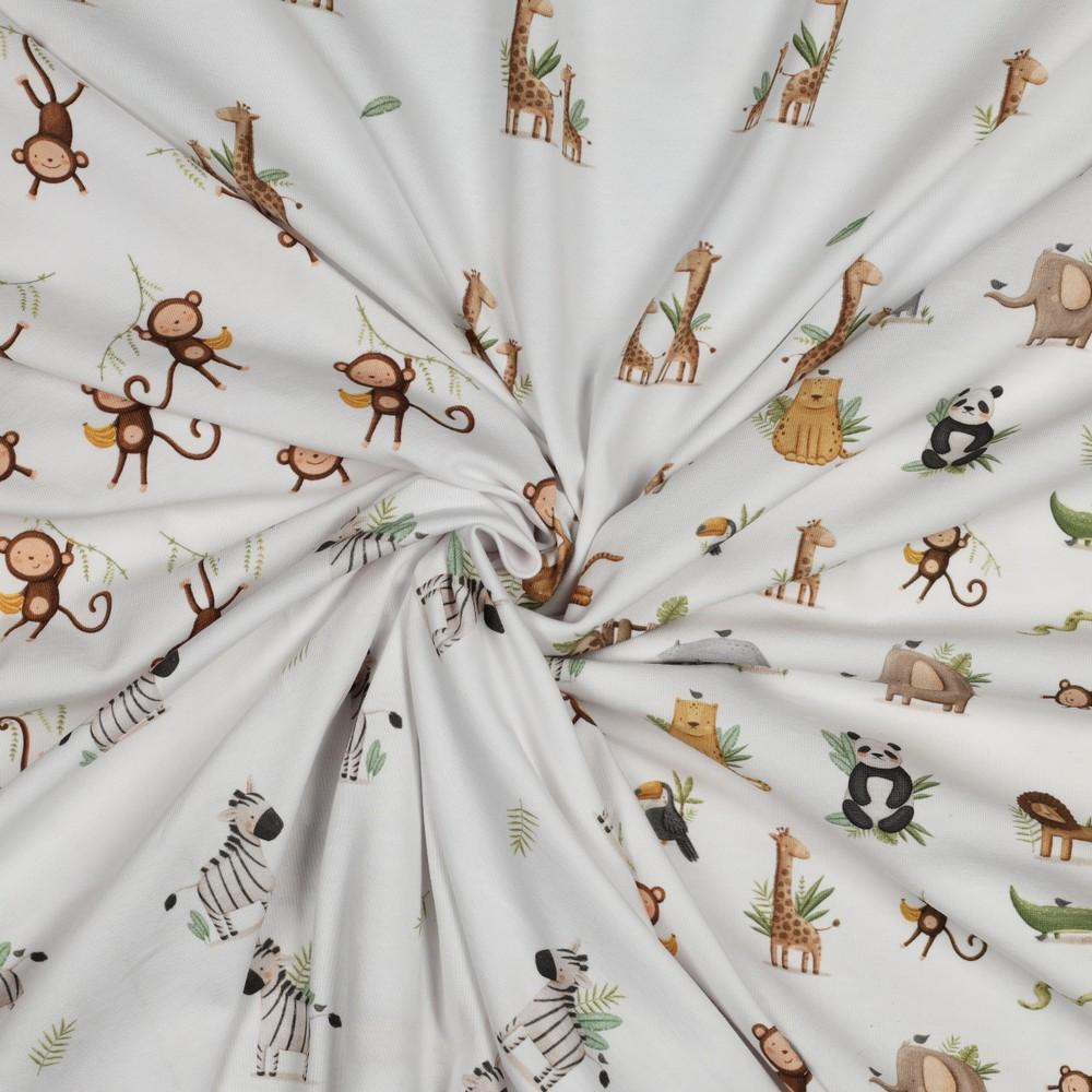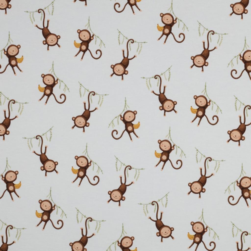 GOTS jersey Slatki majmunčići | bijela | digitalni tisak | 95%CO / 5%EL