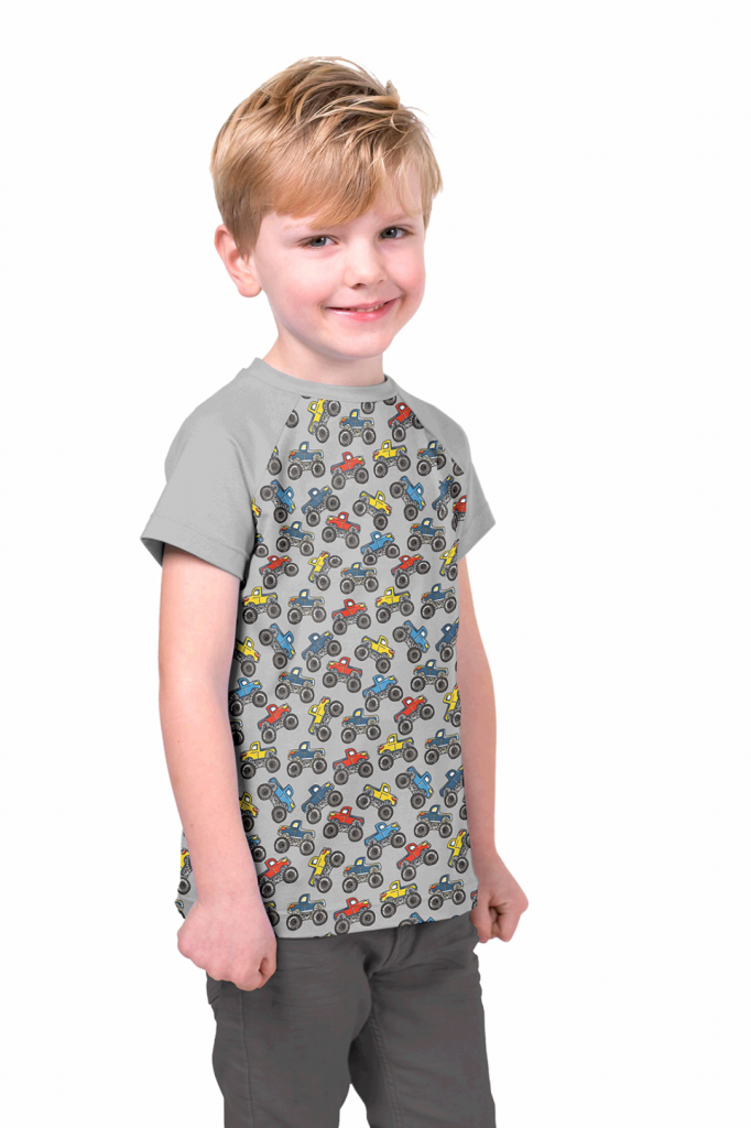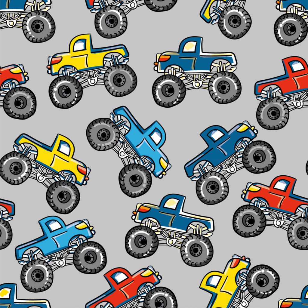 - >Materijali za šivanje>Jersey (mako)>Pamučni jersey>Tiskani>Jersey Monster truck | svijetlosiva | 95%CO / 5%EL