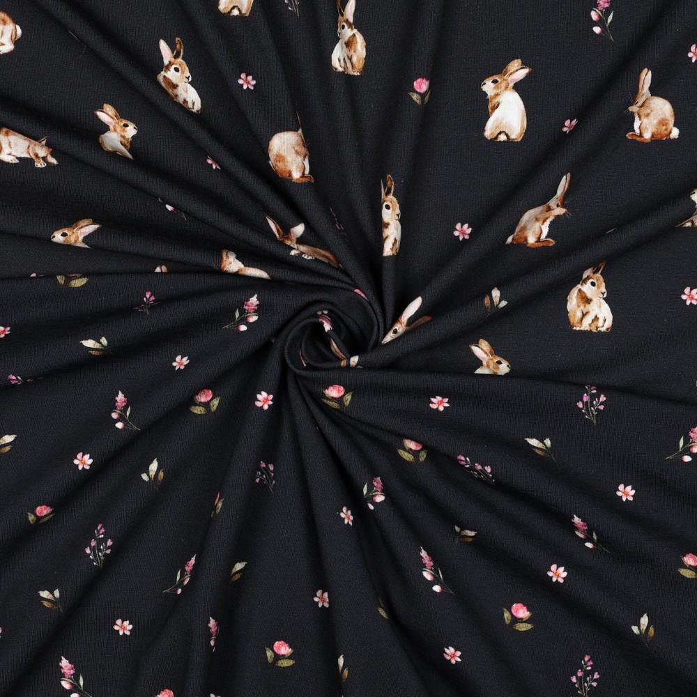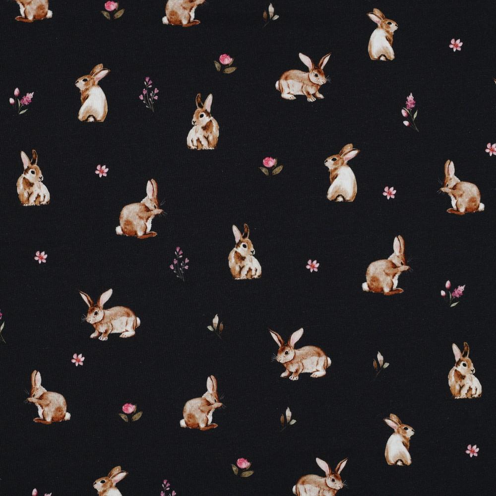 - >Materijali za šivanje>Jersey (mako)>Pamučni jersey>Tiskani>Jersey Zečji vrt | tamnoplava | digitalni tisak | 95%CO / 5%EL