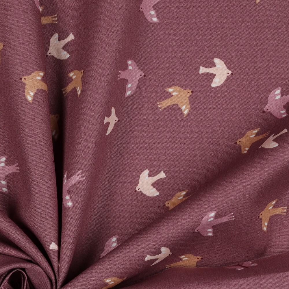 - >Materijali za šivanje>Pamučne tkanine>Popelin tiskani>GOTS popelin Ptičice na nebu | bordo | 100%CO