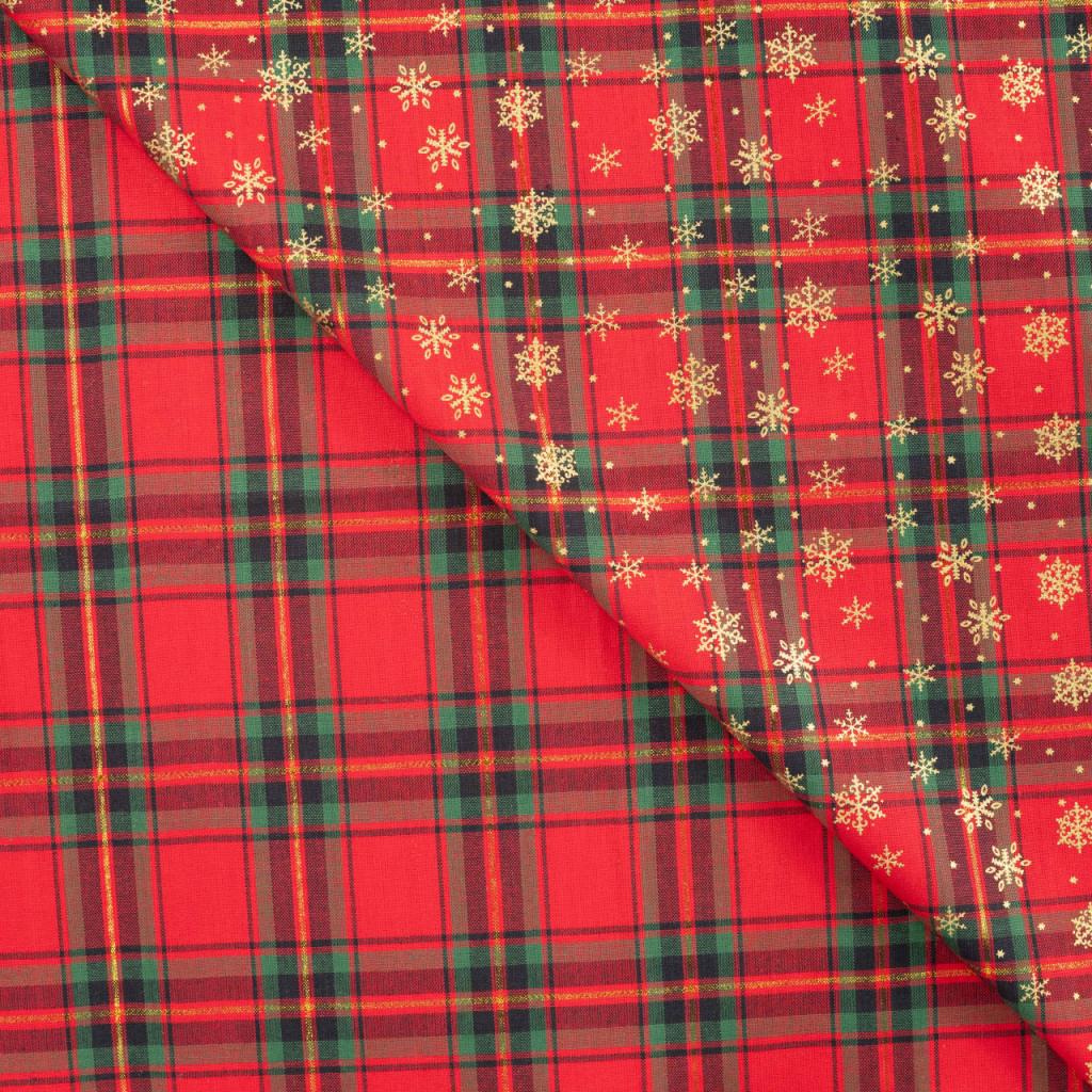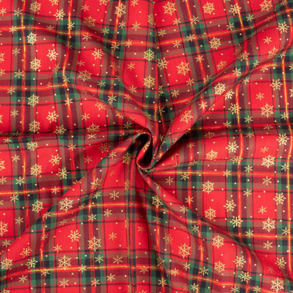- >Materijali za šivanje>Pamučne tkanine>Popelin tiskani>Popelin Božićni karo | Zlatne pahulje | crvena | 100%CO
