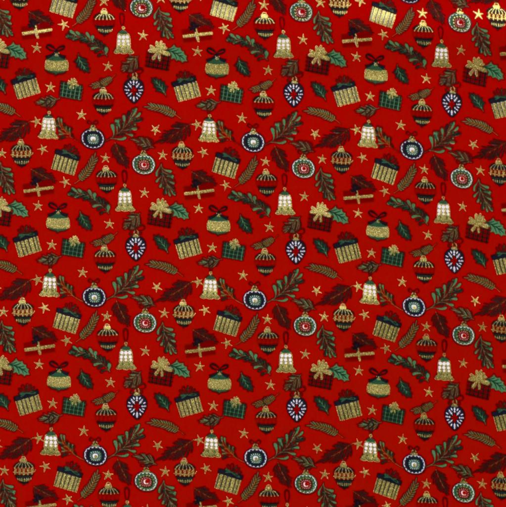 - >Materijali za šivanje>Pamučne tkanine>Popelin tiskani>Popelin Božićni ukrasi i pokloni | metalik | crvena | 100%CO