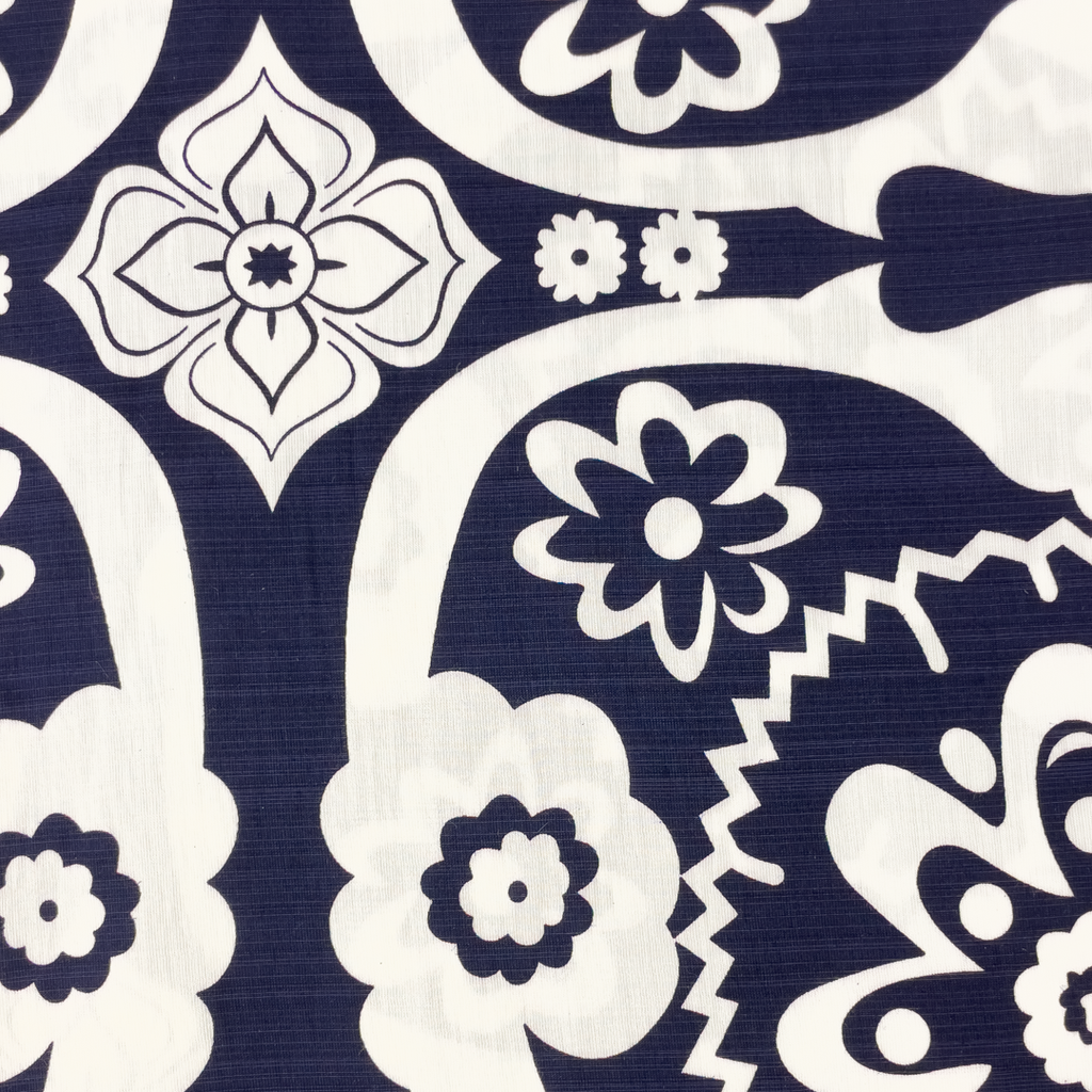 Viskoza s lanom Cvjetna fantazija | tamnoplava | 55%VI / 45%LI