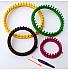 Set okruglih okvira sadrži: 4 šarena okvira dimenzija 12, 17, 22 i 27 cm, iglu od plastične vune, zamašnjak i upute za rad na engleskom, talijanskom i španjolskom.