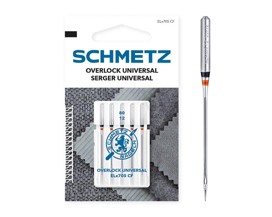Schmetz overlock igle odlikuju dva duga utora, potrebna za overlock šavove i kromirani vrh, što čini iglu otpornijom na trošenje. Kompatibilne su sa svim markama i modelima kućanskih šivaćih strojeva koji zahtijevaju upotrebu igle s ravnim (polukružnim) umetkom.