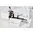 - automatsko isključivanje napetosti konca - pritiskom na ručku za podizanje papučice otpušta se napetost konca, tako da možete jednostavno udaljiti tkaninu - kada papučicu spustimo, ponovno se uspostavlja odgovarajuća napetost konca