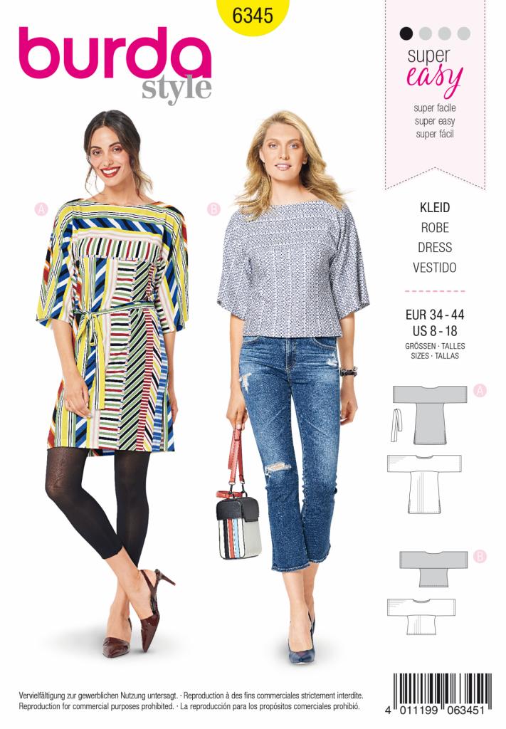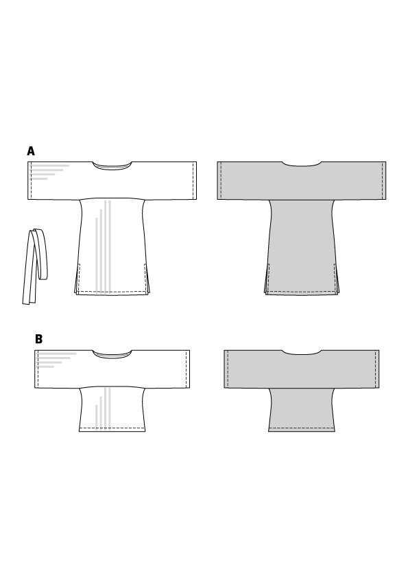 Kroj za tuniko in bluzo ravnih linij iz pletenih materialov.