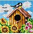 Gobelin Sinička na hišici | 15x15cm