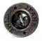 Kovinski gumb za jeans s štirimi luknjicami premera približno 15 mm.