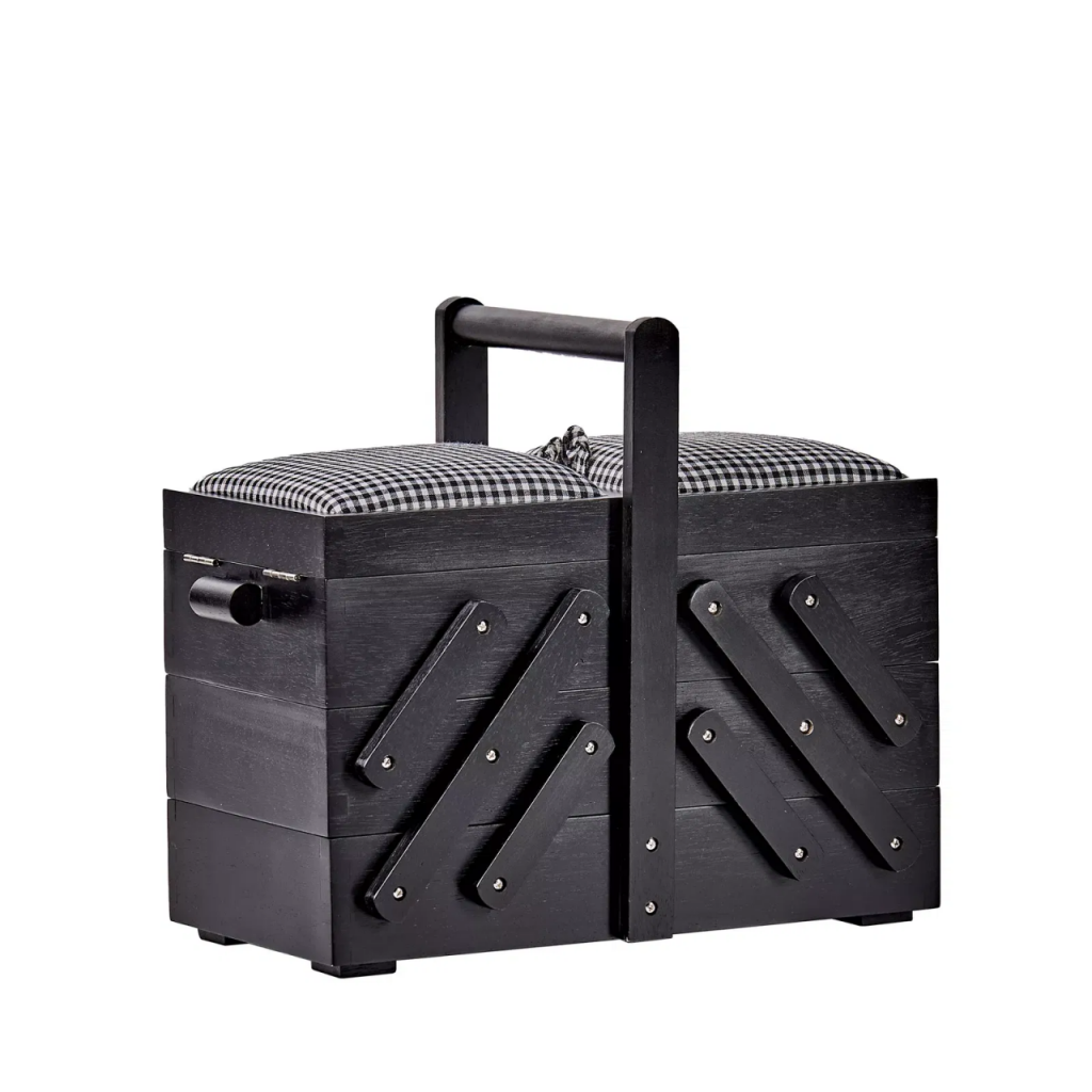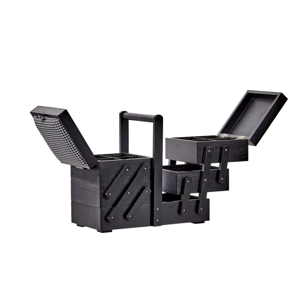 Lesena črna škatla za šivalni pribor, 36 x 19 x 30 cm.