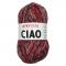 Višebojna vuna za čarape Ciao je primerna za pletenje i heklanje. Sirovinski sastav prediva je: 75% vuna, 25% poliamid. Ovo je čvrsto o izdržljivo predivo koje se najčešće upotrebljava uza izradu čarapa, a obzirom na odličan sastav primereno je i za druge projekte.