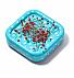 Magnet tirkizne boje sa belim tačkicama. Priloženo je 9g špenadli sa steklenom glavom.