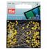 Špenadle sa žutim staklenim glavama u plastičnoj kutiji.