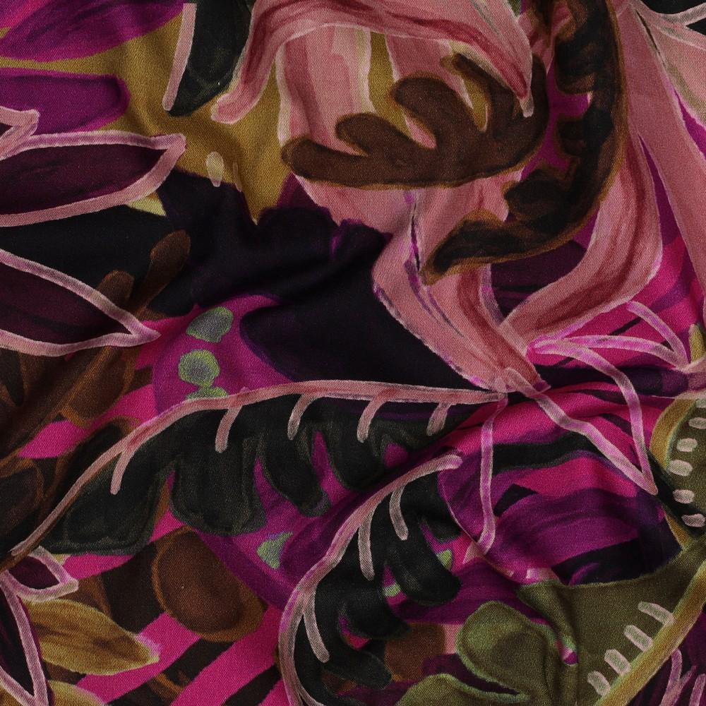 - >Materijali za šivenje>Viskozne tkanine>Dezeni>Pamuk sa viskozom Tropska noć | roze/oker | 60%CO / 40%VI
