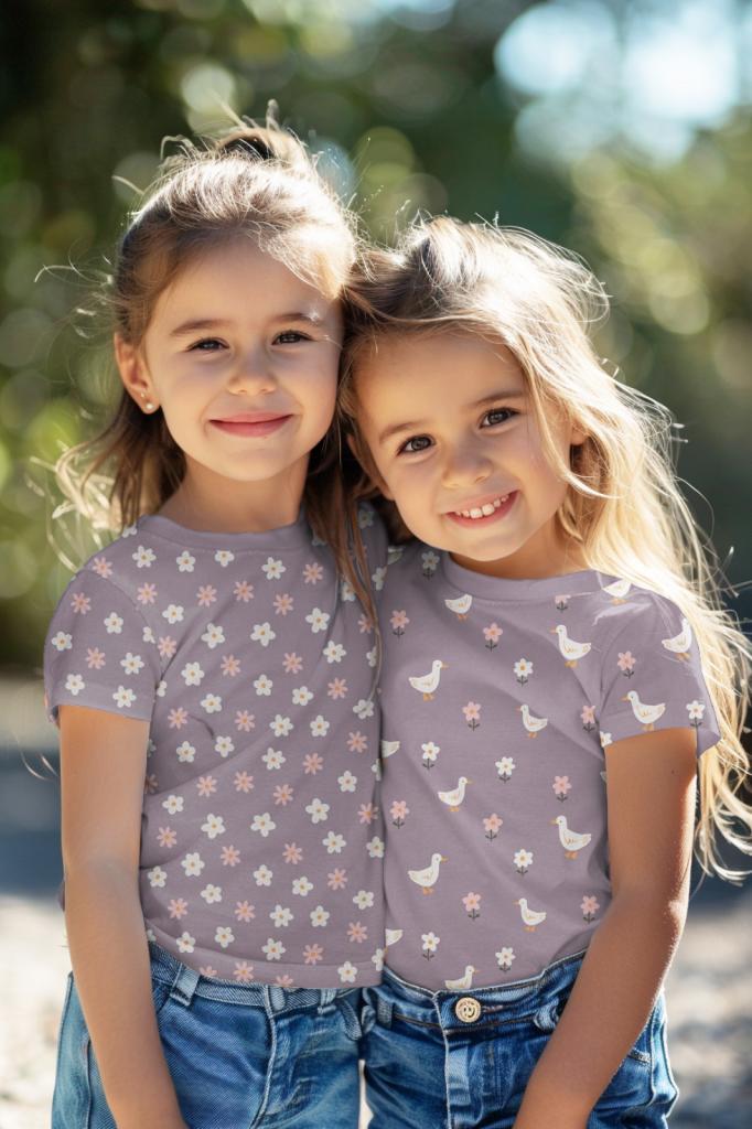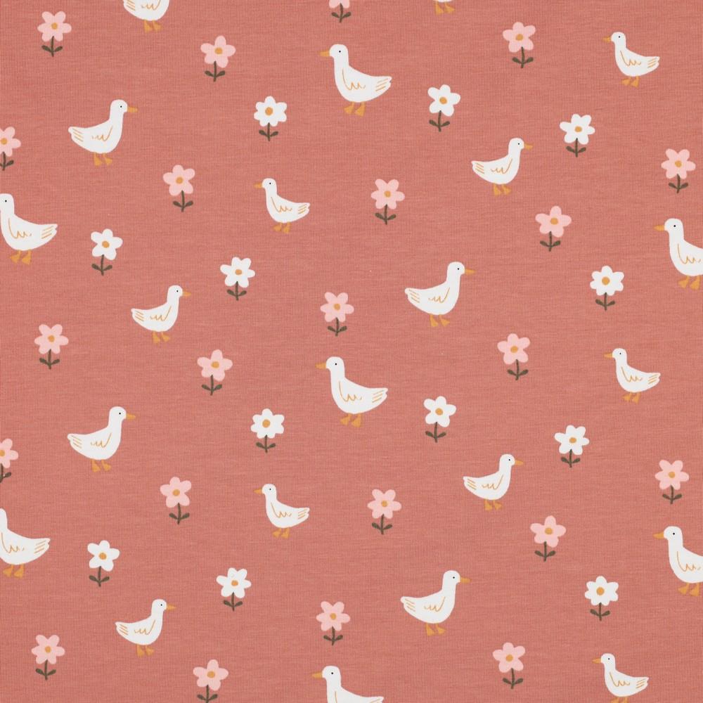 - >Materijali za šivenje>Žersej>Pamučni žersej>Dezeni>GOTS žersej Guske i cvetići | losos | 95%CO / 5%EL