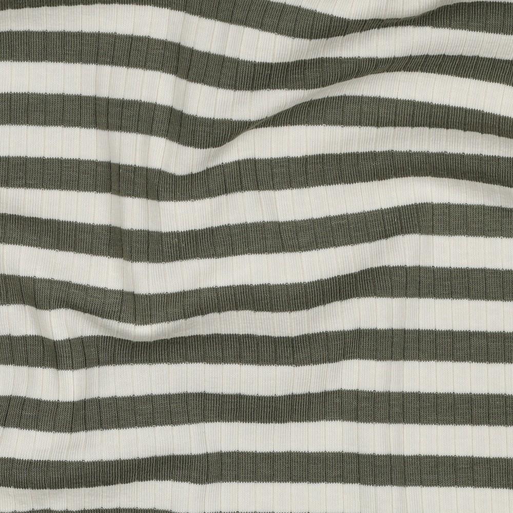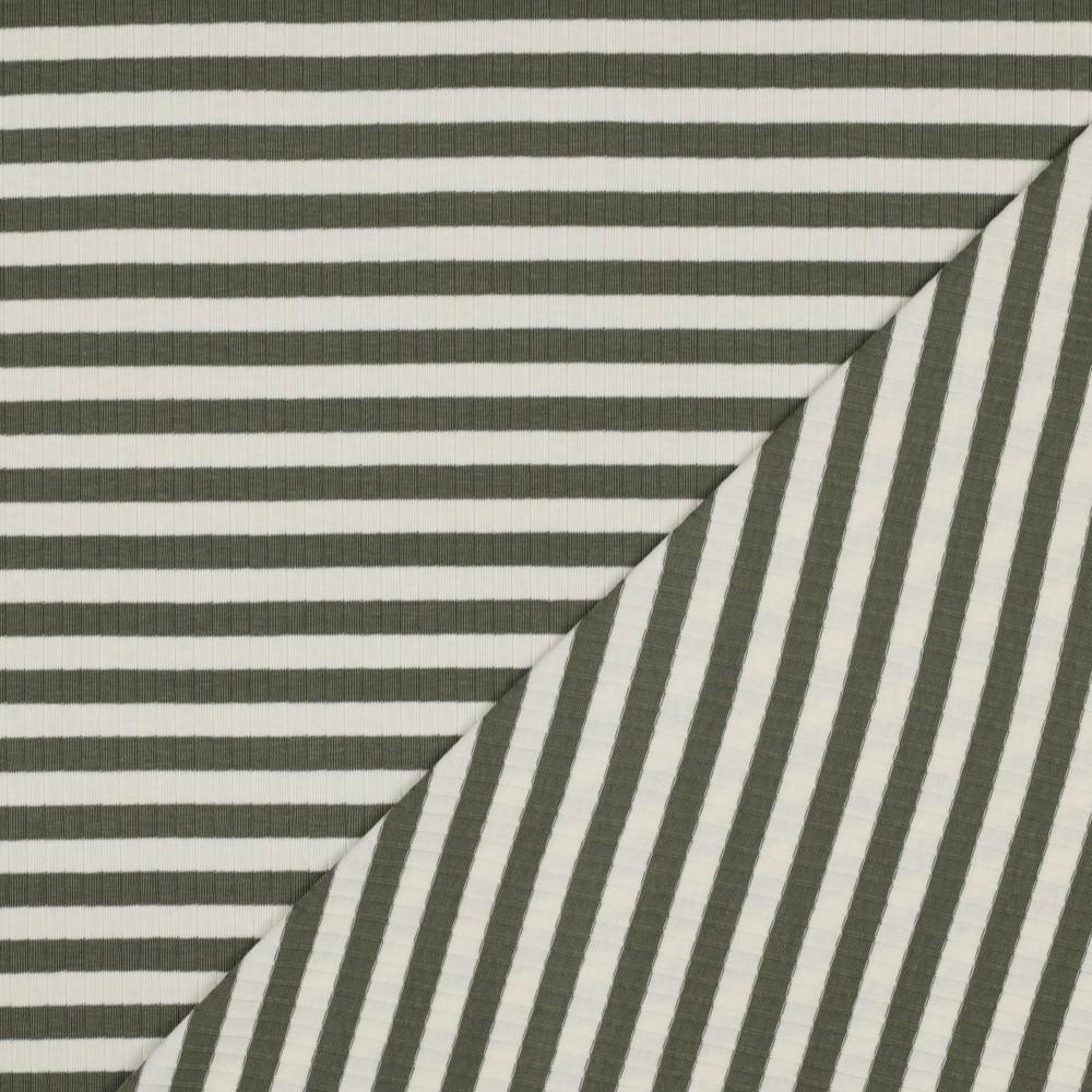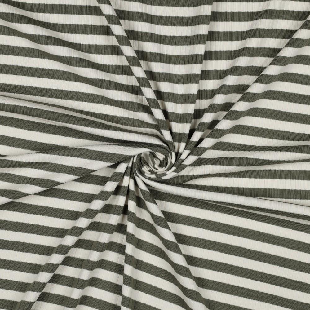 - >Materijali za šivenje>Žersej>Pamučni žersej>Dezeni>Rebrasti žersej Yarn dyed | Crte | maslinasta | 95%CO / 5%EL