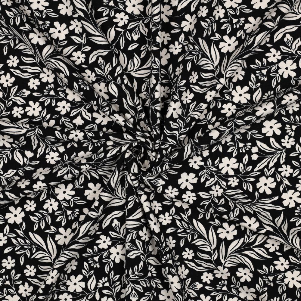 - >Materijali za šivenje>Žersej>Pamučni žersej>Dezeni>Žersej Ružičasta bajka | crna/bela | 95%CO / 5%EL