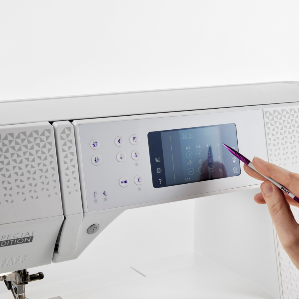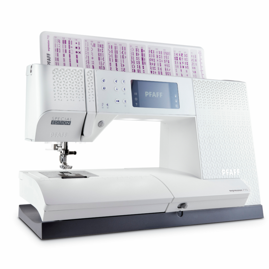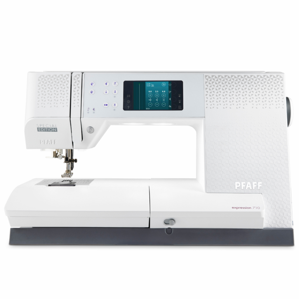 Šivalni stroj Pfaff Expression 710 verzija Special Edition ima dodan komplet 5 dodatnih tačk - skupaj kar 13 tačk in 27 kosov priloženega pribora. Pojdite na svojo naslednjo umetniško pot z izpopolnjeno tehnologijo, prefinjeno eleganco in domiselnostjo znamke PFAFF®.